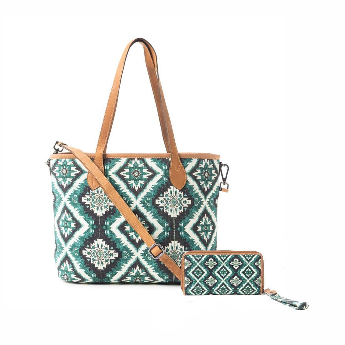 PRODUCT DESCRIPTION: Embrace timeless tribal elegance with the Desert Mirage Set, a beautifully matched tote...